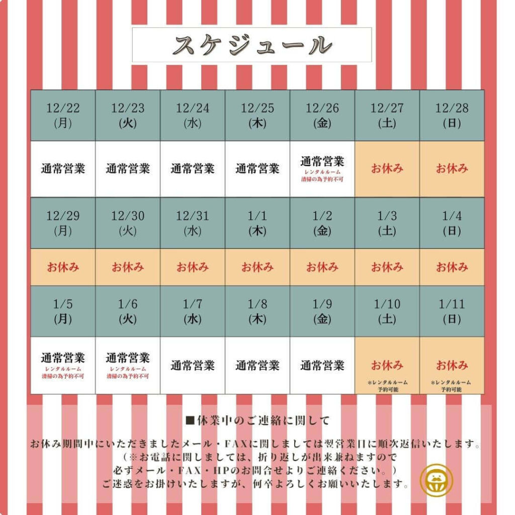 清掃等の関係の為、レンタルルームは12月25日(木)まで