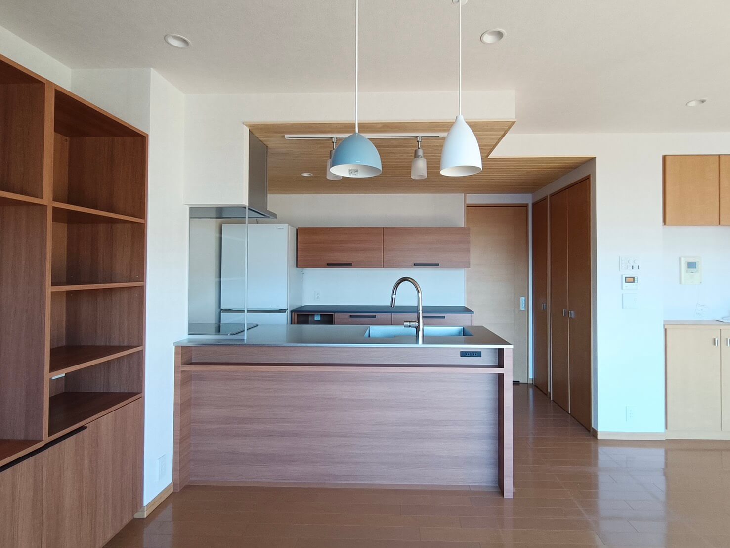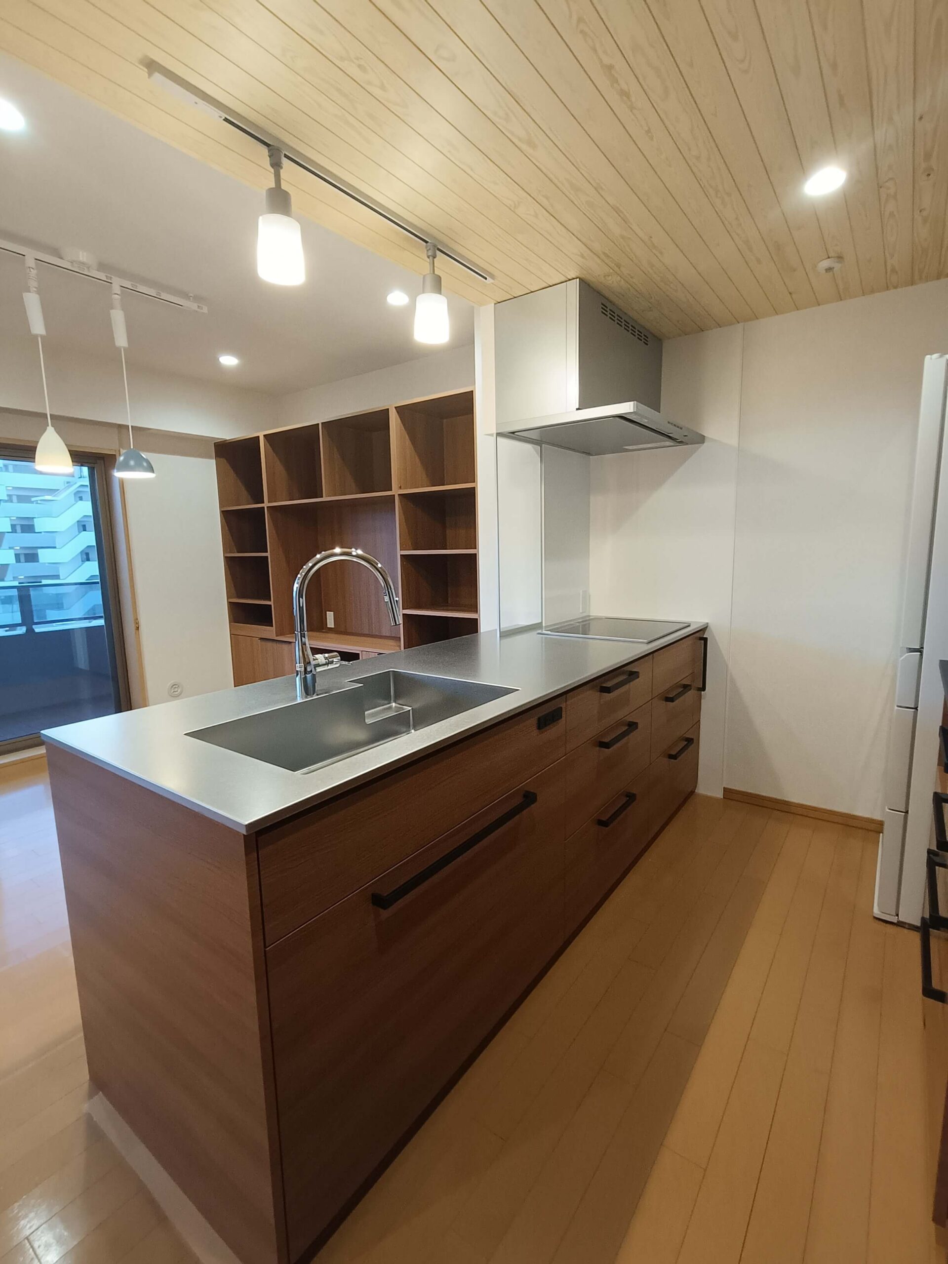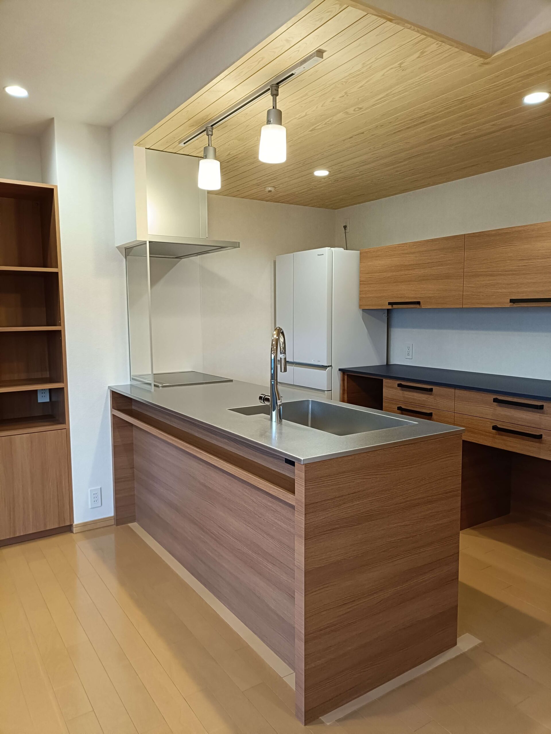 そこで隔たりを取り、ペニンシュラキッチンに変えた事で部屋全体に奥行と高さが出て広く明るく開放的に。