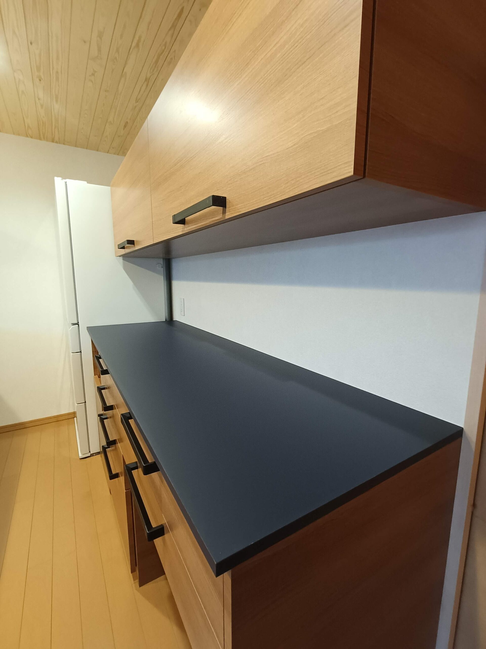 バックセットは作業もできるようW1900㎜と広めにスペースを設置して実用性もあがりました。