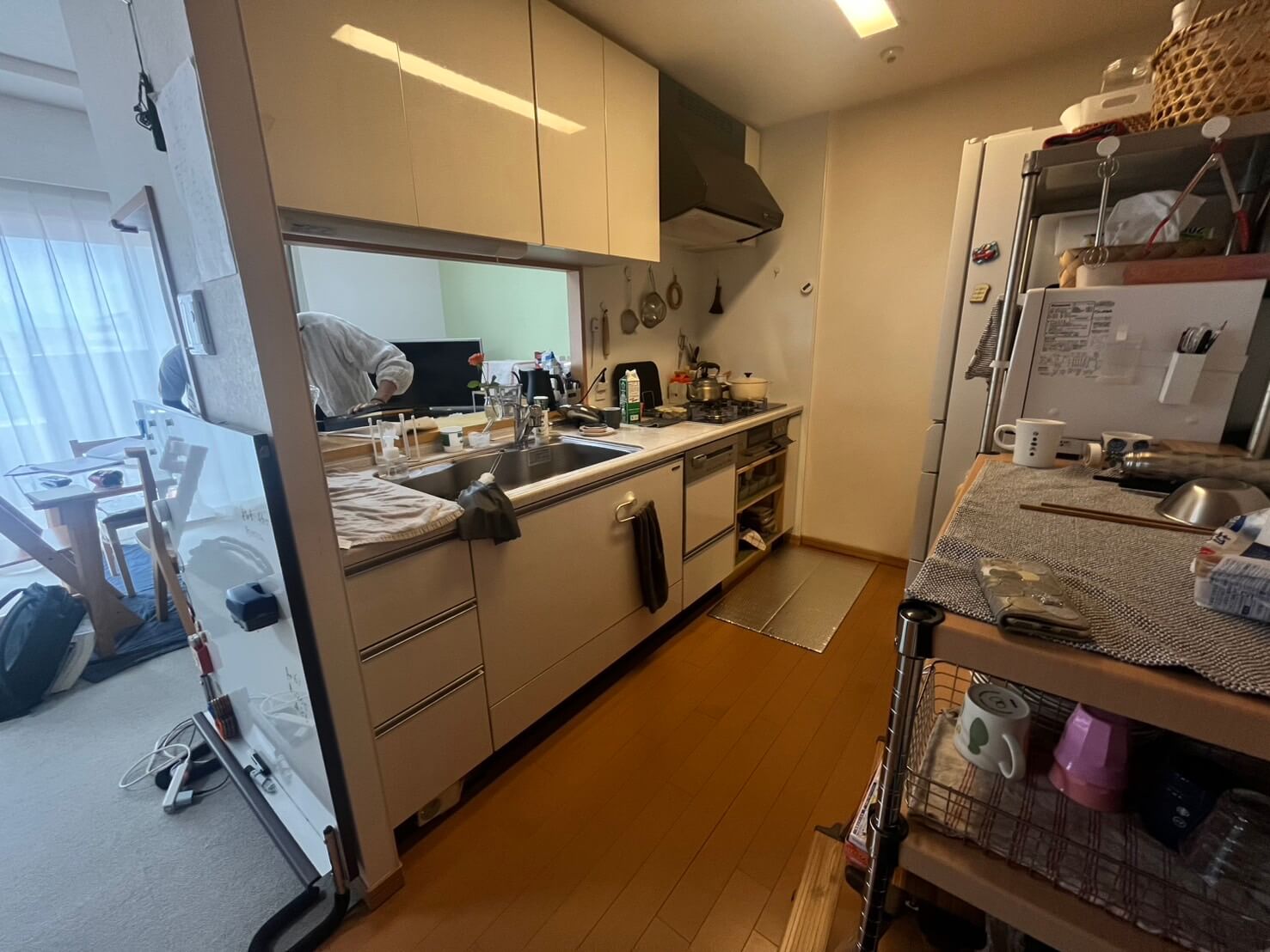 キッチンとダイニングとの間に壁を隔てていて対面式ではあるけれど天井自体が低めな事もあり、