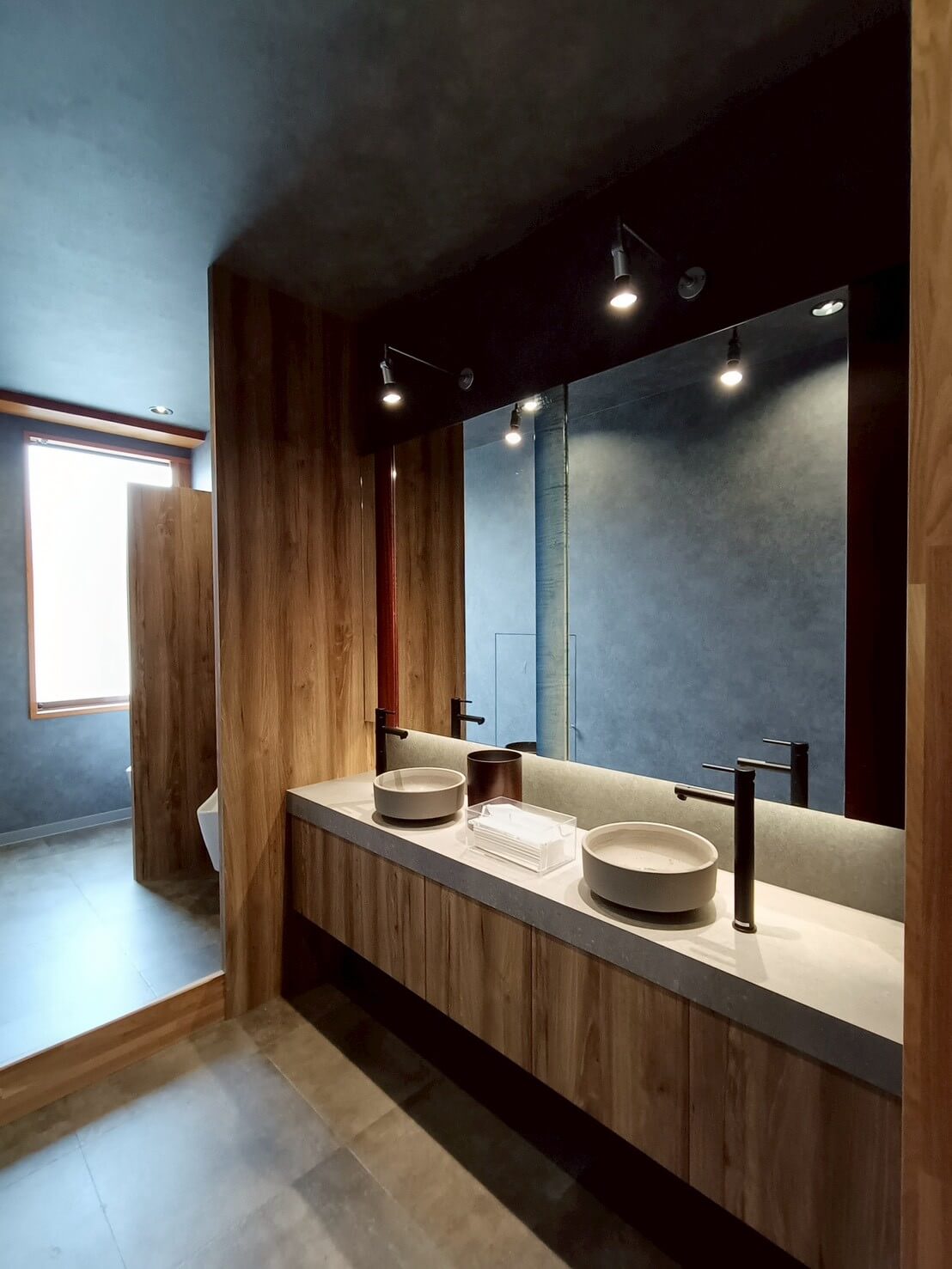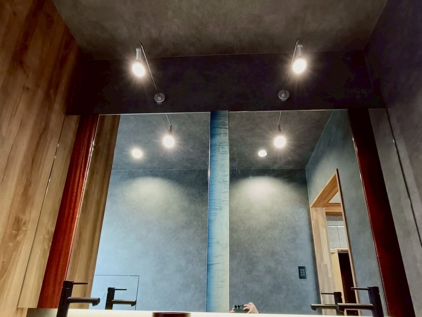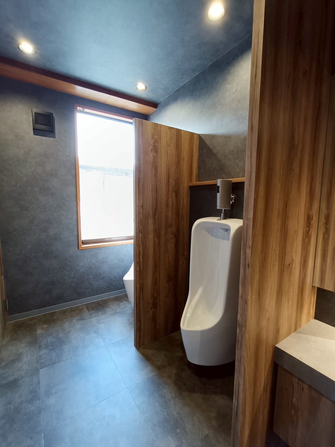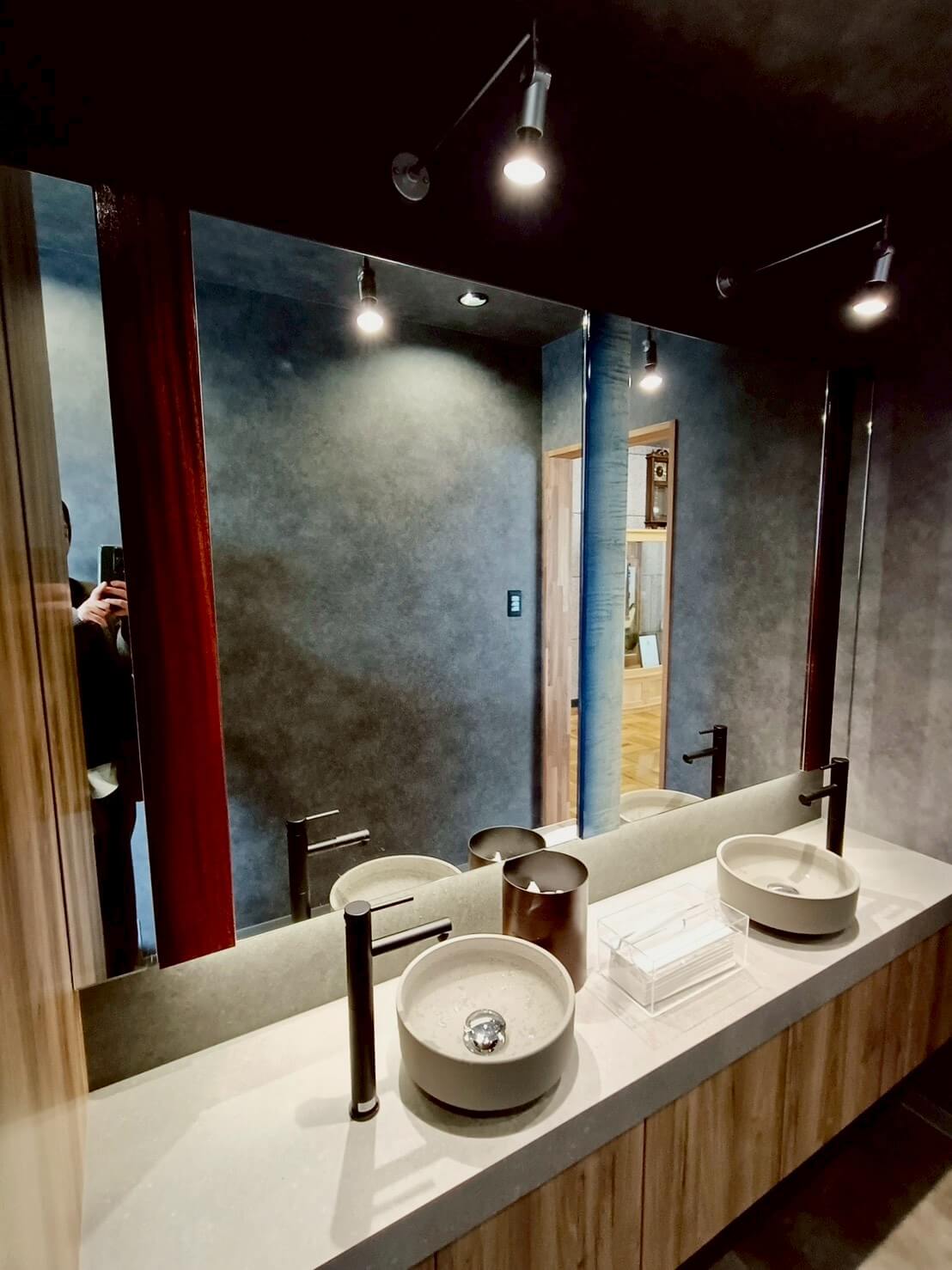 トイレが2,30名の従業員数に対し、男女兼用で1つしかなく不便であったギターメーカーのオフィス。 更衣室奥にあったトイレを活用できるように、更衣室を区切り、新しく男子トイレを製作。 既存のトイレは女子トイレとして新しくリフォームしました。 鏡部分には男女トイレ共にギター材を使ったりと、ギターメーカーらしいこだわりを。 シックな色合いで落ち着く空間となりました。