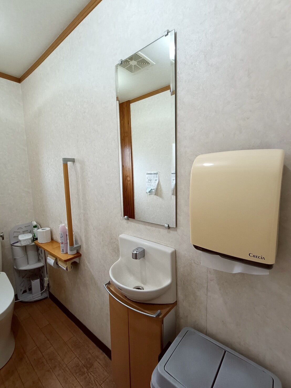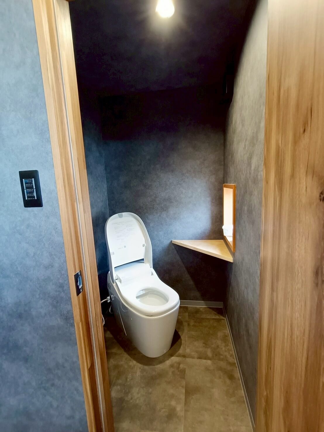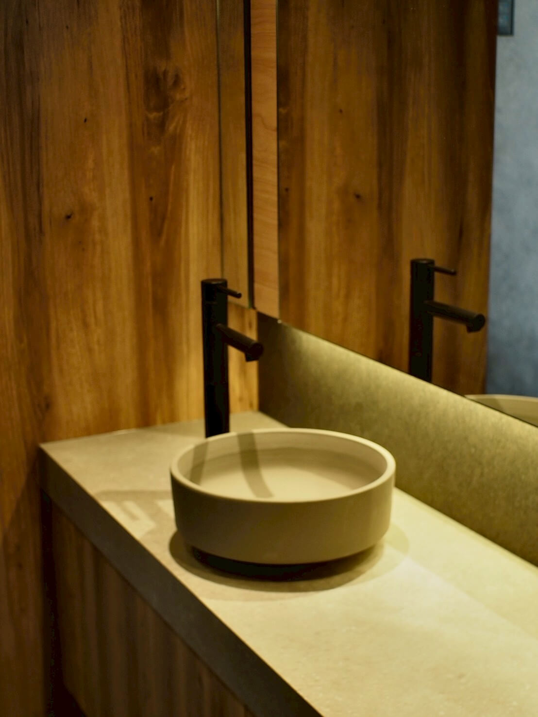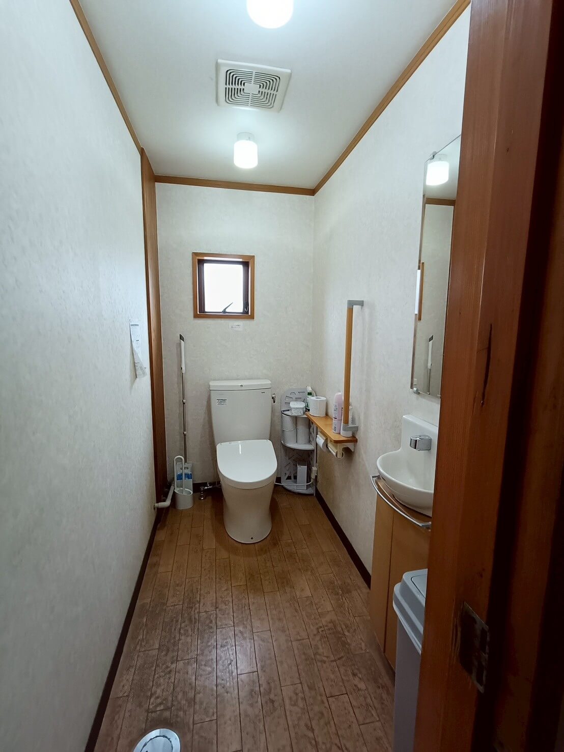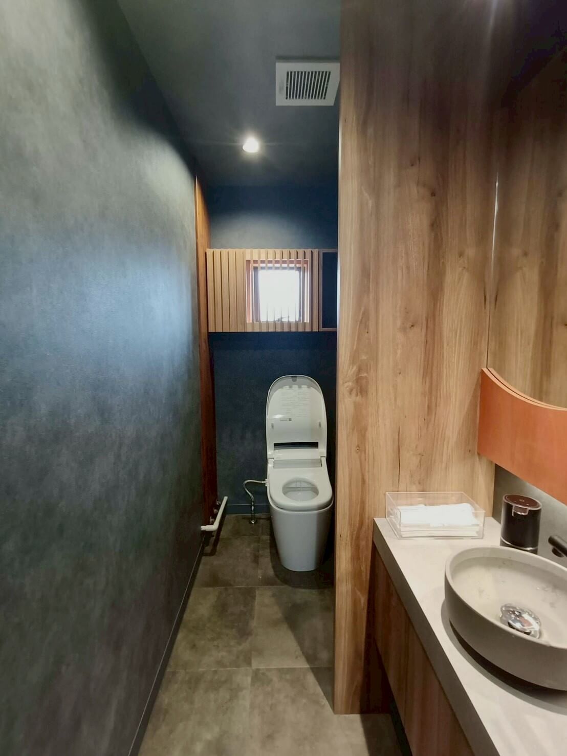 トイレが2,30名の従業員数に対し、男女兼用で1つしかなく不便であったギターメーカーのオフィス。 更衣室奥にあったトイレを活用できるように、更衣室を区切り、新しく男子トイレを製作。 既存のトイレは女子トイレとして新しくリフォームしました。 鏡部分には男女トイレ共にギター材を使ったりと、ギターメーカーらしいこだわりを。 シックな色合いで落ち着く空間となりました。